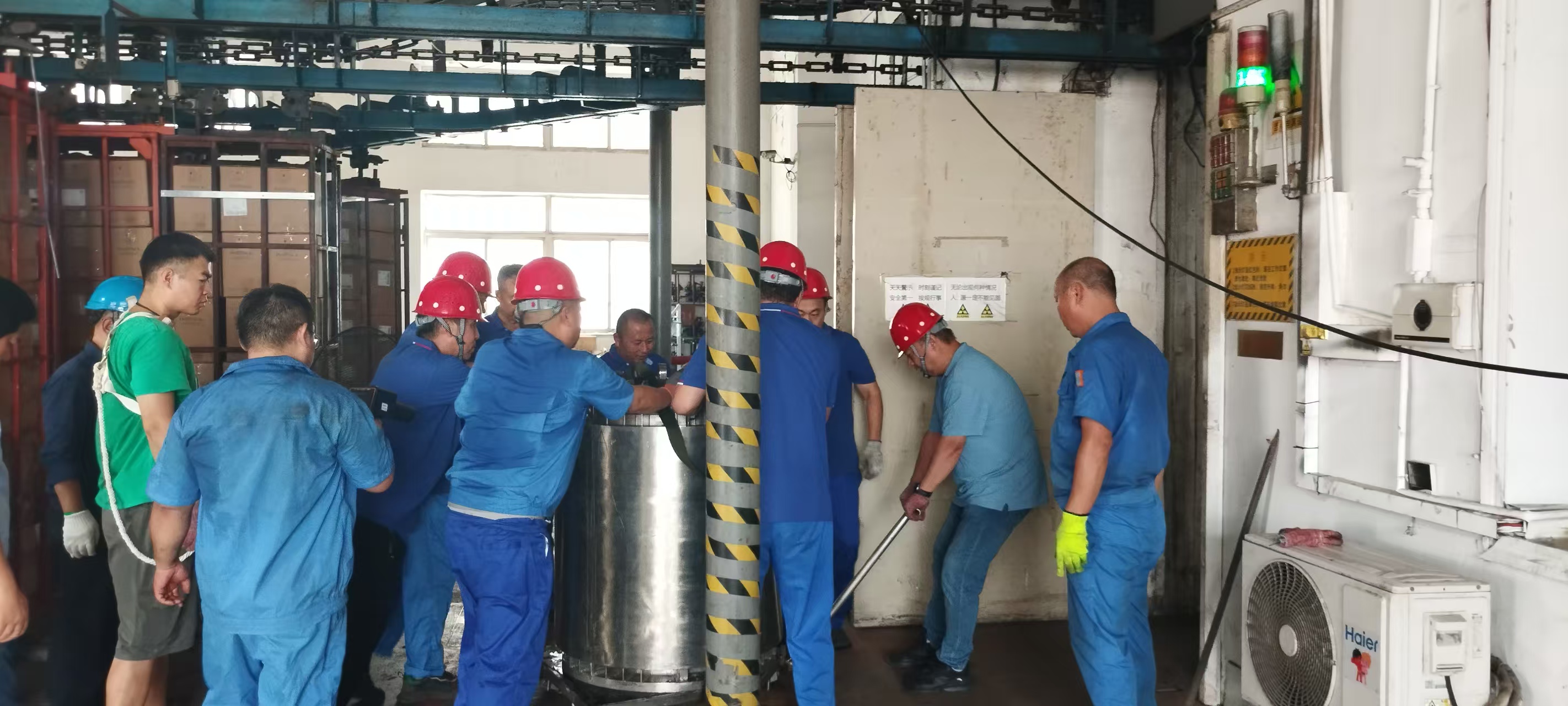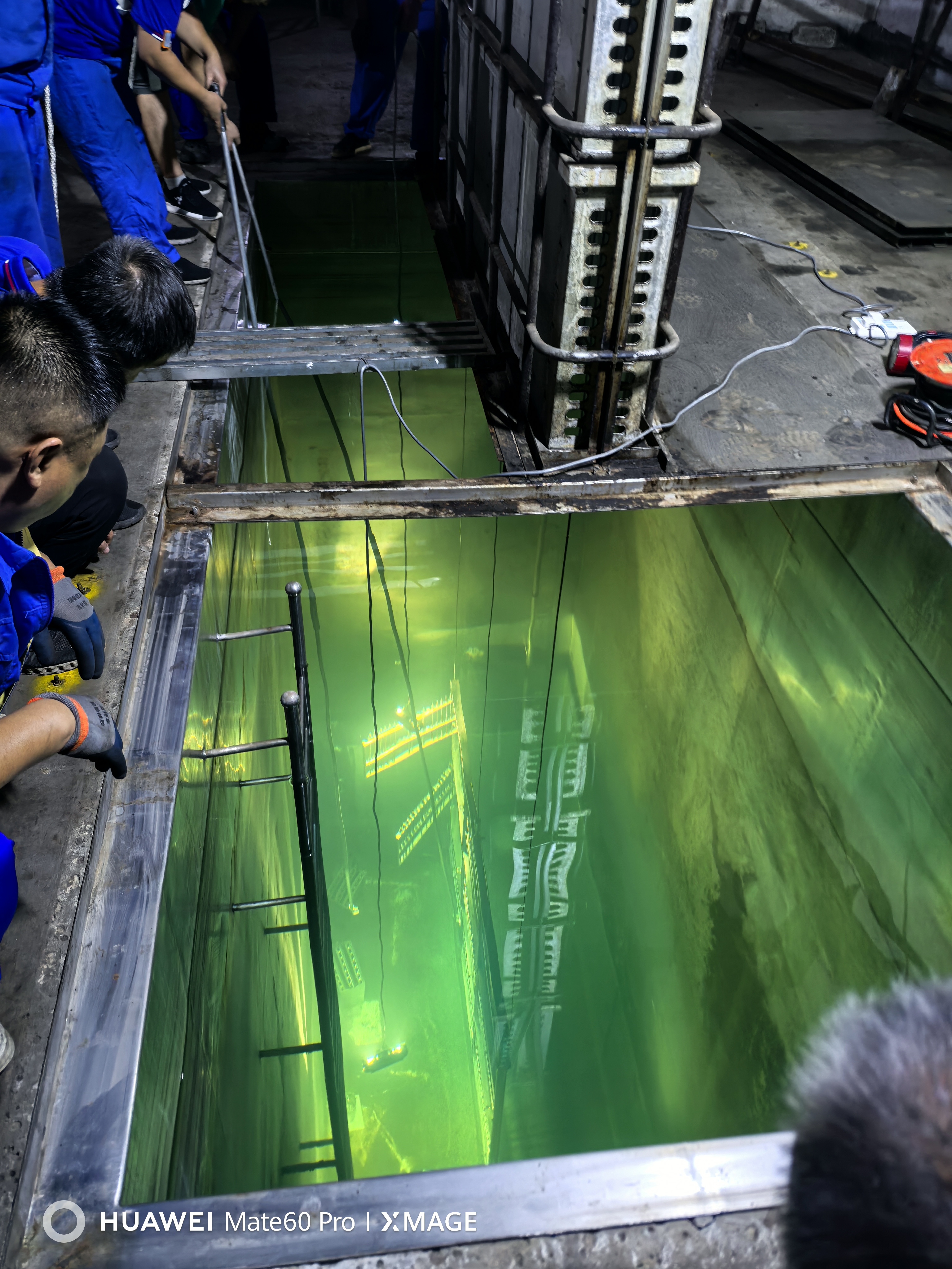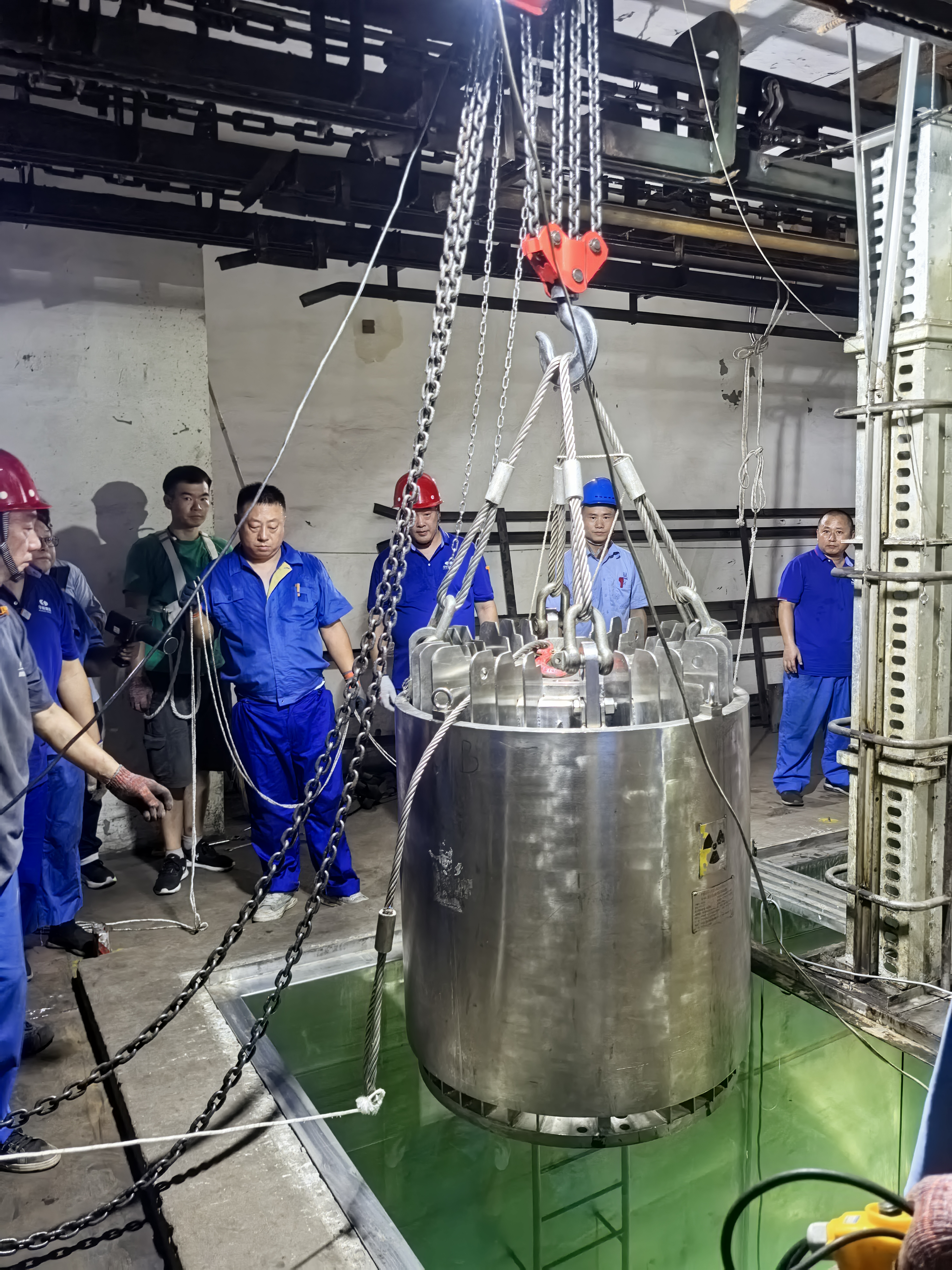 2025年是三批次購(gòu)入的38枚鈷源的法定退役窗口,全體員工及支持人員,齊心協(xié)力,完成了即將退役的38枚源棒的下架和10枚新購(gòu)源棒的上架工作,過程安全,結(jié)果圓滿。同時(shí),對(duì)于源板、護(hù)源罩、鋼絲繩等進(jìn)就行了水下攝像掃描,確保每一顆小小螺絲釘,每一股每一絲鋼絲繩無(wú)毛刺,無(wú)隱患,確保每一道安全連鎖靈敏有效。下午六點(diǎn)順利升源,正常投入生產(chǎn)。華明輻照將繼續(xù)深耕輻照加工領(lǐng)域,拓展新市場(chǎng),推動(dòng)企業(yè)高質(zhì)量發(fā)展,迎接更加嚴(yán)峻的挑戰(zhàn)。