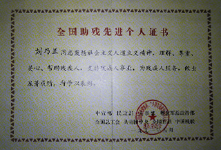 “全國(guó)助殘先進(jìn)個(gè)人”榮譽(yù)稱(chēng)號(hào)