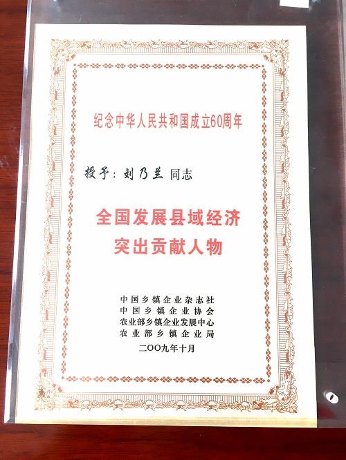 全國優(yōu)秀鄉(xiāng)鎮(zhèn)企業(yè)家終身成就獎(jiǎng)