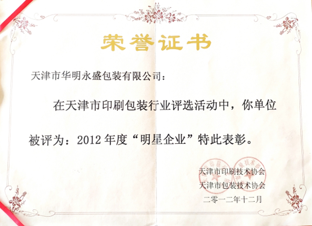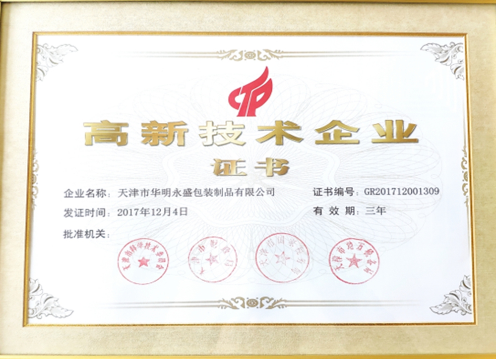 天津市華明永盛包裝制品有限公司,系天津市津東華明紙箱廠與香港華興置業(yè)有限公司共同投資設(shè)立的一家以生產(chǎn)紙箱、紙盒、紙板與包裝物印刷的綜合型企業(yè)。本公司注冊于2004年9月,2006年開始投入試生產(chǎn),公司座落在天津空港經(jīng)濟區(qū)航空路220號,占地面積53966平方米,建筑面積38422平方米,擁有臺灣產(chǎn)瓦楞紙板生產(chǎn)線、臺灣長聲印刷機、日本產(chǎn)糊箱機等國內(nèi)國際一流的先進生產(chǎn)設(shè)備。注冊資金600萬美元,法人代表劉乃蘭,企業(yè)現(xiàn)有員工180人,其中專業(yè)技術(shù)人員10余名,獲得實用新型專利數(shù)35個,發(fā)明專利1個,2017年被評為全國高新技術(shù)企業(yè)。